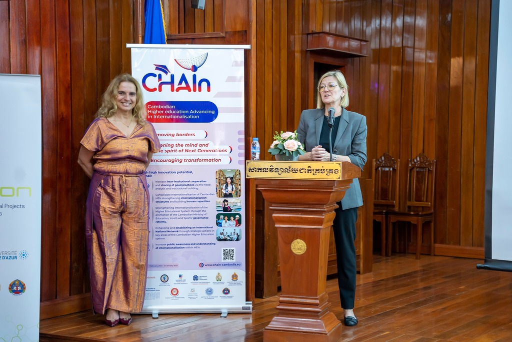 The project teams from ๐๐๐๐ ๐๐ง๐ ๐๐๐๐ at the ๐๐๐ญ๐ข๐จ๐ง๐๐ฅ ๐๐ง๐ข๐ฏ๐๐ซ๐ฌ๐ข๐ญ๐ฒ ๐จ๐ ๐๐๐ง๐๐ ๐๐ฆ๐๐ง๐ญ, as key implementing partners of the CHAIn and UNICATION projects, were honored to support the ๐๐๐ฆ๐๐จ๐๐ข๐ ๐๐๐ญ๐ข๐จ๐ง๐๐ฅ ๐๐ข๐๐ฅ๐จ๐ ๐ฎ๐ ๐จ๐ง "๐๐ข๐ ๐ก๐๐ซ ๐๐๐ฎ๐๐๐ญ๐ข๐จ๐ง ๐ญ๐ก๐ซ๐จ๐ฎ๐ ๐ก ๐๐ง๐ญ๐๐ซ๐ง๐๐ญ๐ข๐จ๐ง๐๐ฅ๐ข๐ณ๐๐ญ๐ข๐จ๐ง ๐๐ง๐ ๐๐จ๐ฆ๐ฆ๐ฎ๐ง๐ข๐๐๐ญ๐ข๐จ๐ง." The event was co-organized by MoEYS and NUM, with support from partner HEIs in Cambodia and Europe, and was held on 17โ18 November 2025 at NUM.