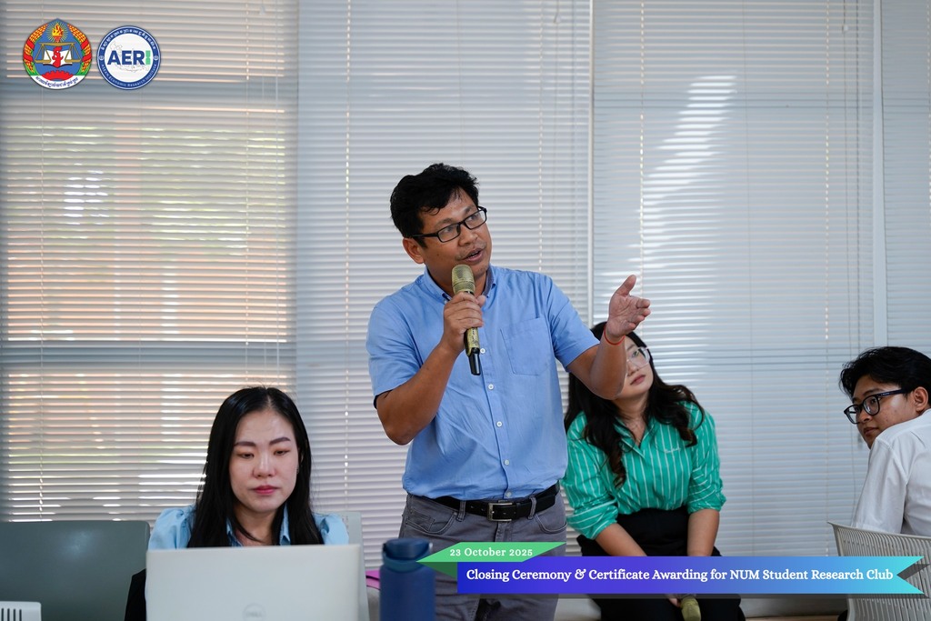On 25 December 2025, the NUM Student Research Club held Seminar 1 at the CamboVerse Center, NUM International Campus. The session opened with guiding remarks by ๐.๐. ๐๐ซ. ๐๐จ๐ซ ๐๐๐ง๐ , Rector of NUM and Club President, emphasizing the value of research and skill development. The seminar featured two student presentationsโIntroduction to Social Research by Mr. Phan Piseth (iBBA B4) and Nature and Scope of Managerial Economics by Mr. Va Mouniseyhak (SPP M2)โand concluded with a Special Lecture on Data Analysis with Excel: Module 1 by Professor Phim Runsinarith.